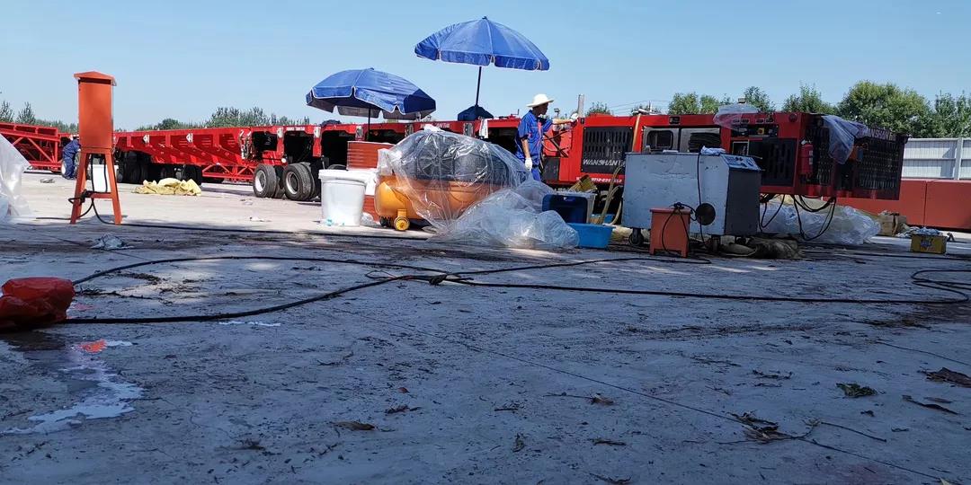 為確保項目順利完成,萬山公司一邊加緊為觀禮臺項目定制生產(chǎn)20臺平板車,另一邊趕往全國各地協(xié)調(diào),將已售出的動力頭和230軸線模塊車租回進行改造、升級,并對車輛進行維護保養(yǎng)。